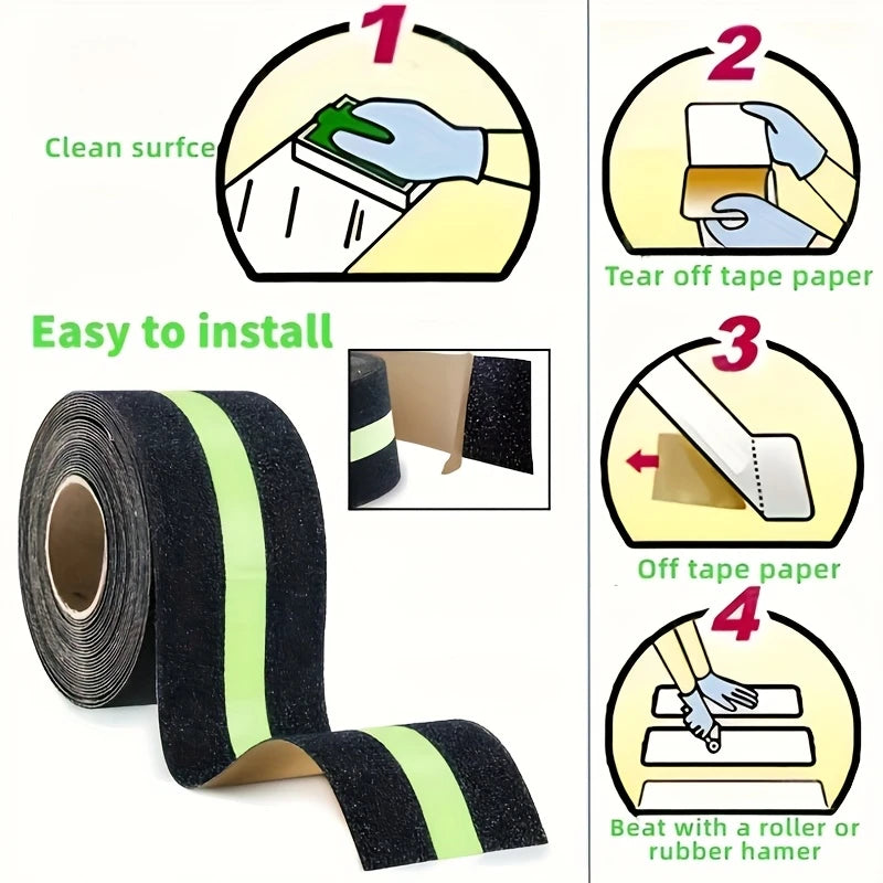 Ensure safety in any environment with our 2-inch x 5-meter Glow-In-The-Dark Anti-Slip Tape—ideal for both home and commercial use!